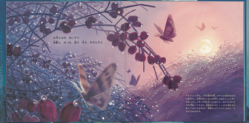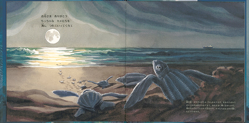 地球上の生きものは、月に影響を受けながら暮らしています。オサガメ、フンコロガシ、サンゴ……様々な生きものの月夜の営みを、おだやかな言葉と美しい絵で描く科学絵本。