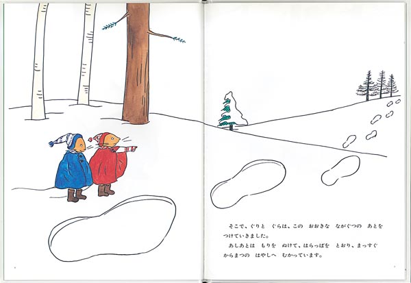 ぐりとぐらが雪の上に見つけた大きな足あとは、自分たちの家まで続いていました。しかも、玄関にはまっかなコートが……。ドキドキしながら楽しめるクリスマスの絵本。