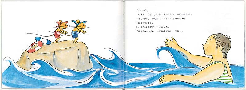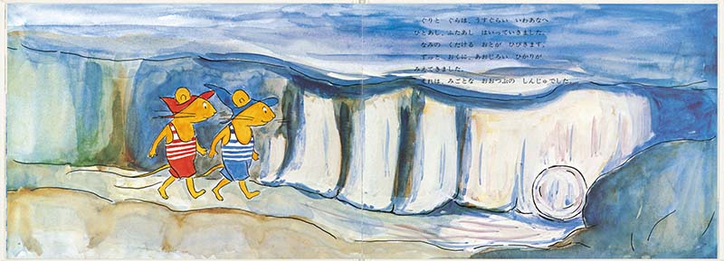 野ねずみのぐりとぐらは、浜辺であきびんを見つけました。中から出てきたのは地図と浮き袋、それに海ぼうずからの手紙! ぐりとぐらの海での大冒険物語。