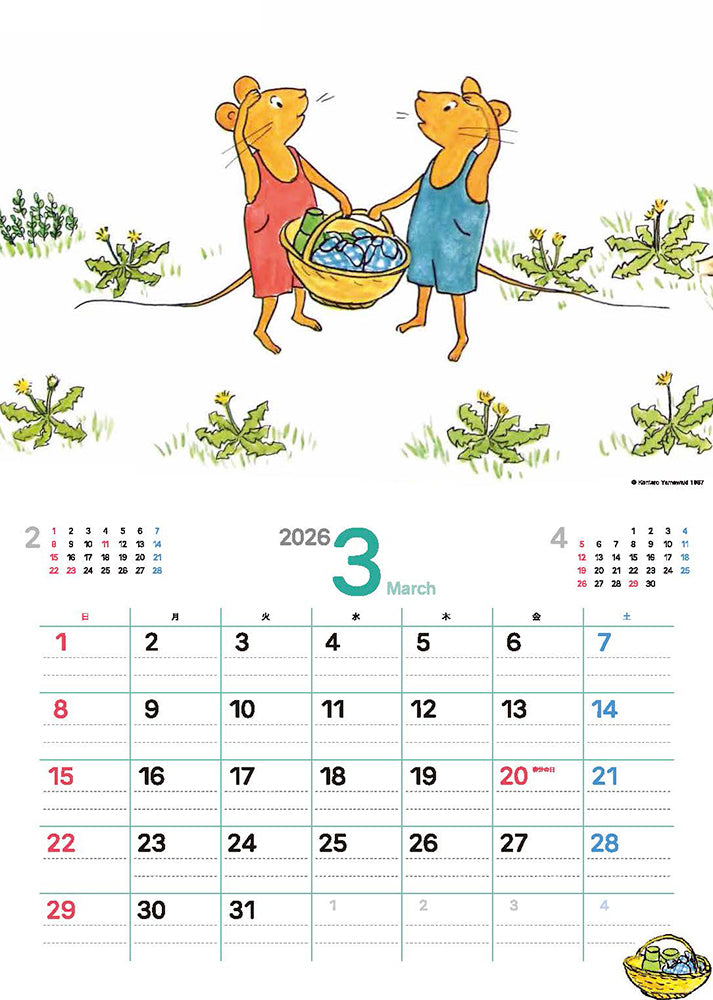 いつも元気な「ぐりとぐら」と一緒に、1年を過ごしませんか? 予定をたくさん書き込め、シンプルで見やすい、毎年人気のカレンダー。すがすがしく楽しい気分を味わえます!