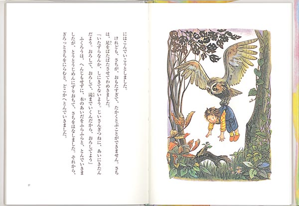 おばあちゃんのかわりになないろ山を救おうと、さちは、じいさんぎつねのもとへと向かいます。みずみずしい文章が美しい挿絵と一体になった楽しい幼年向きファンタジー。