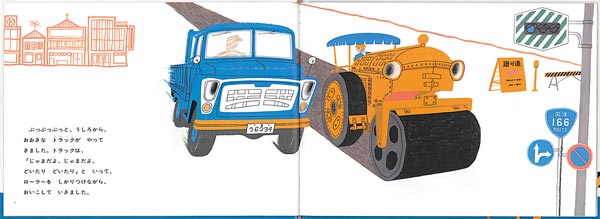 道路を直すローラーはいつもゆっくりゆっくり。スピードの速い自動車が次つぎに追いこしてゆきますが……。子どもたちをたっぷり満足させてくれる絵本です。