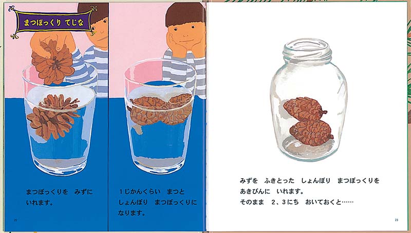 まつぼっくりには、ふしぎがいっぱい。雨の日には、形がすっかり変わるし、タネは、くるくるまわってダンスを踊る。身近なまつぼっくりの特性を、楽しく紹介した絵本。