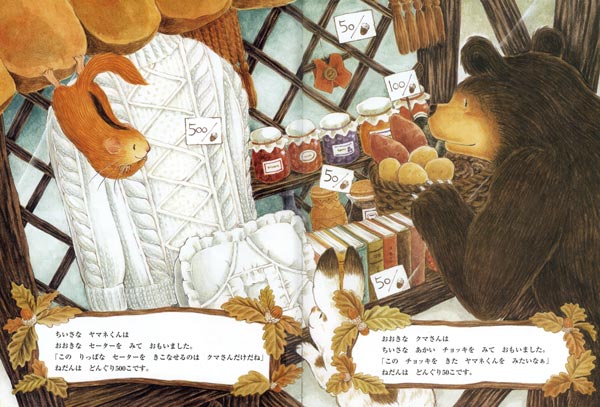 クマさんとヤマネくんは贈り物をしようと、ふゆじたくのおみせへ買い物に行くのですが……。大切な人に贈り物をするときの思いが伝わってくる心温まる絵本。