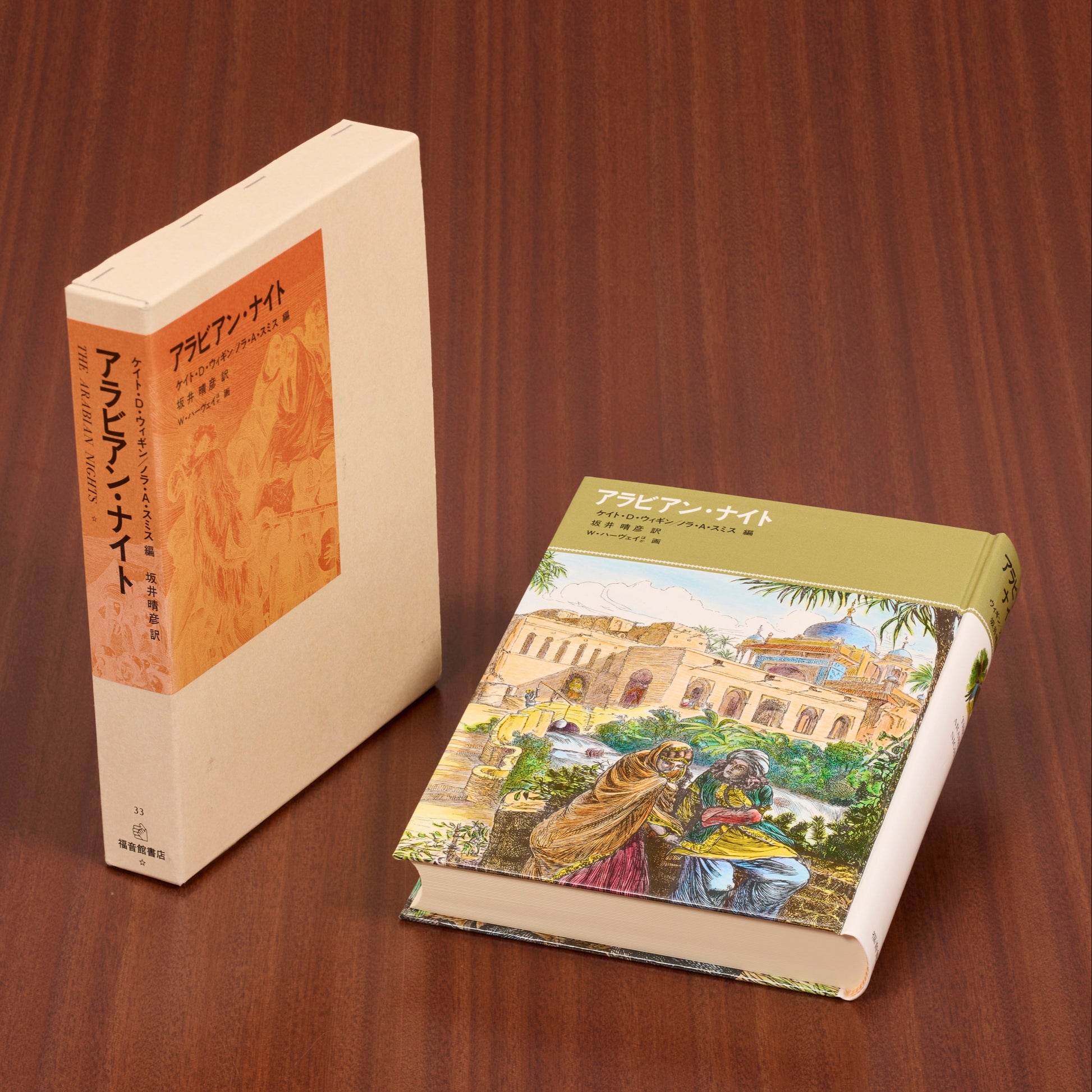 「アラディンと魔法のランプ」ほか7篇からなる、子ども向けに再話、編集された『アラビアン・ナイト』の物語集。さし絵は、19世紀に出版された“レイン版”と“ダルジル版”より。