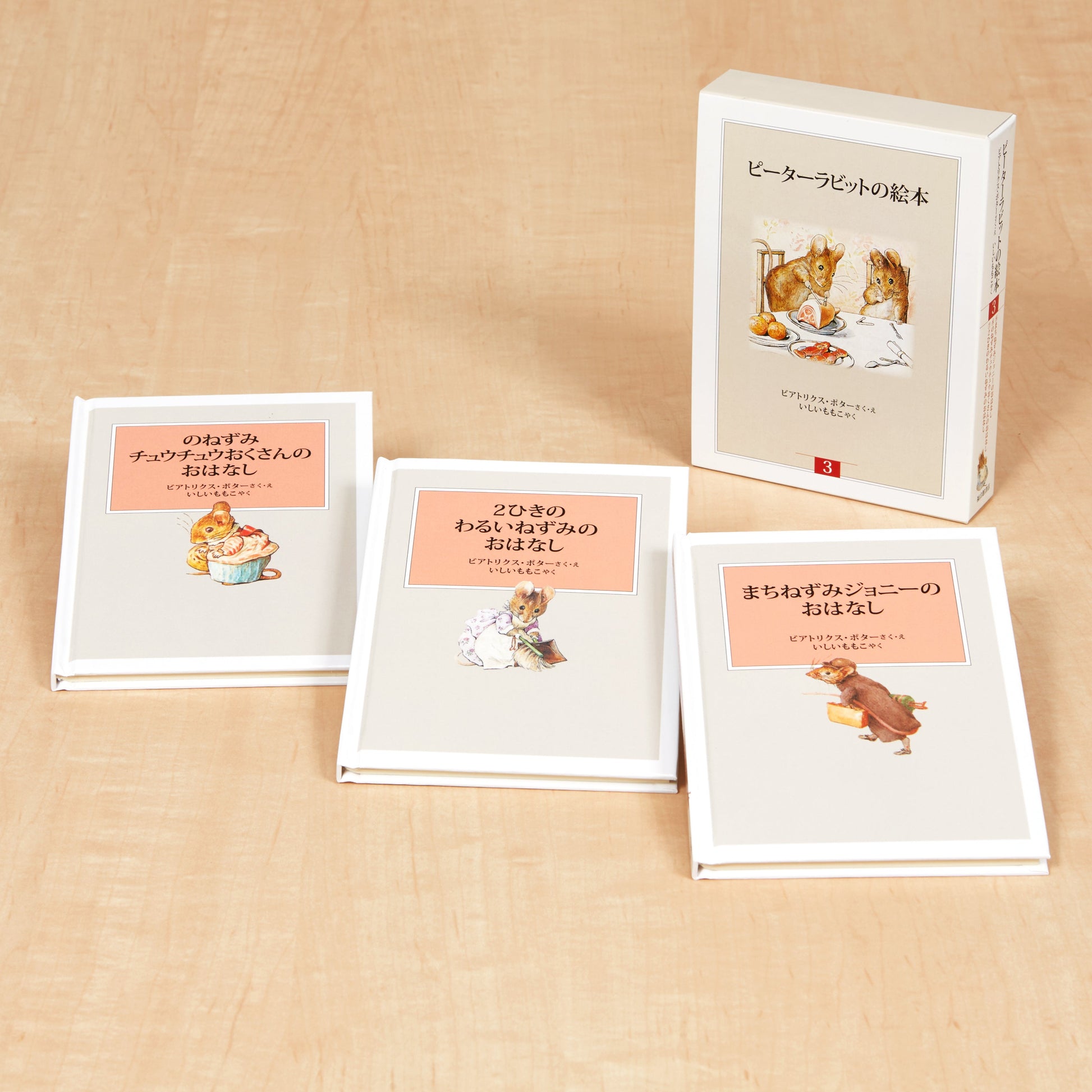 100年以上前から、世界中の子どもたちに愛されつづけたロングセラー絵本。のどかなイギリスの田園を舞台に、小動物たちが繰り広げるユーモラスな事件が、写実的、かつ淡く美しい水彩画によって、楽しく展開されます。セットに含まれるのは、『2ひきのわるいねずみのおはなし』『のねずみチュウチュウおくさんのおはなし』『まちねずみジョニーのおはなし』の3作品です。